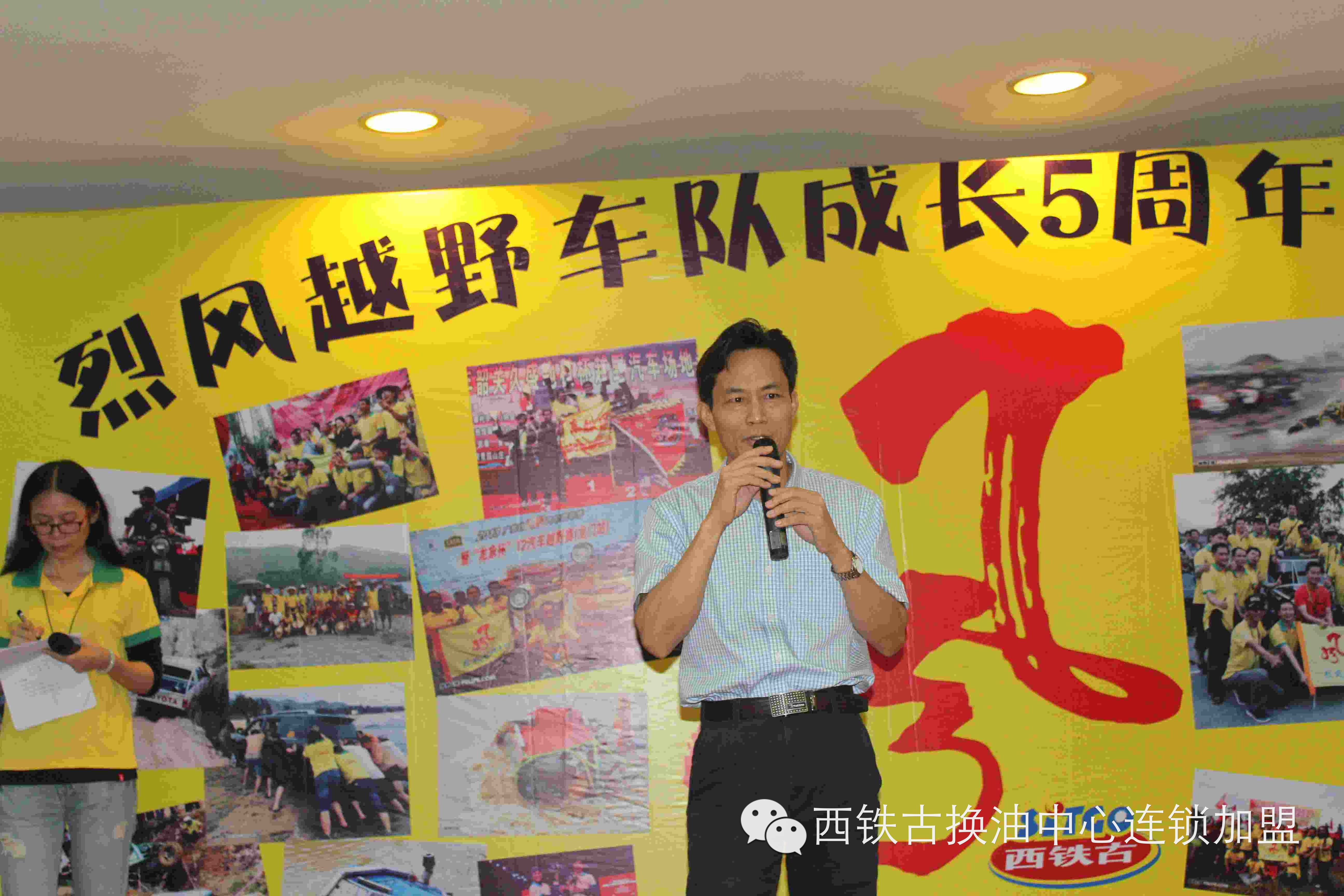 车队合作单位西铁古润滑油公司孙总上台发言表示,西铁古润滑油参与赛车运动十多年,西铁古公司将一如既往地支持烈风车队,并向在场的越野e族各分队发出邀请,西铁古公司是车队赛车养护的强大后盾!